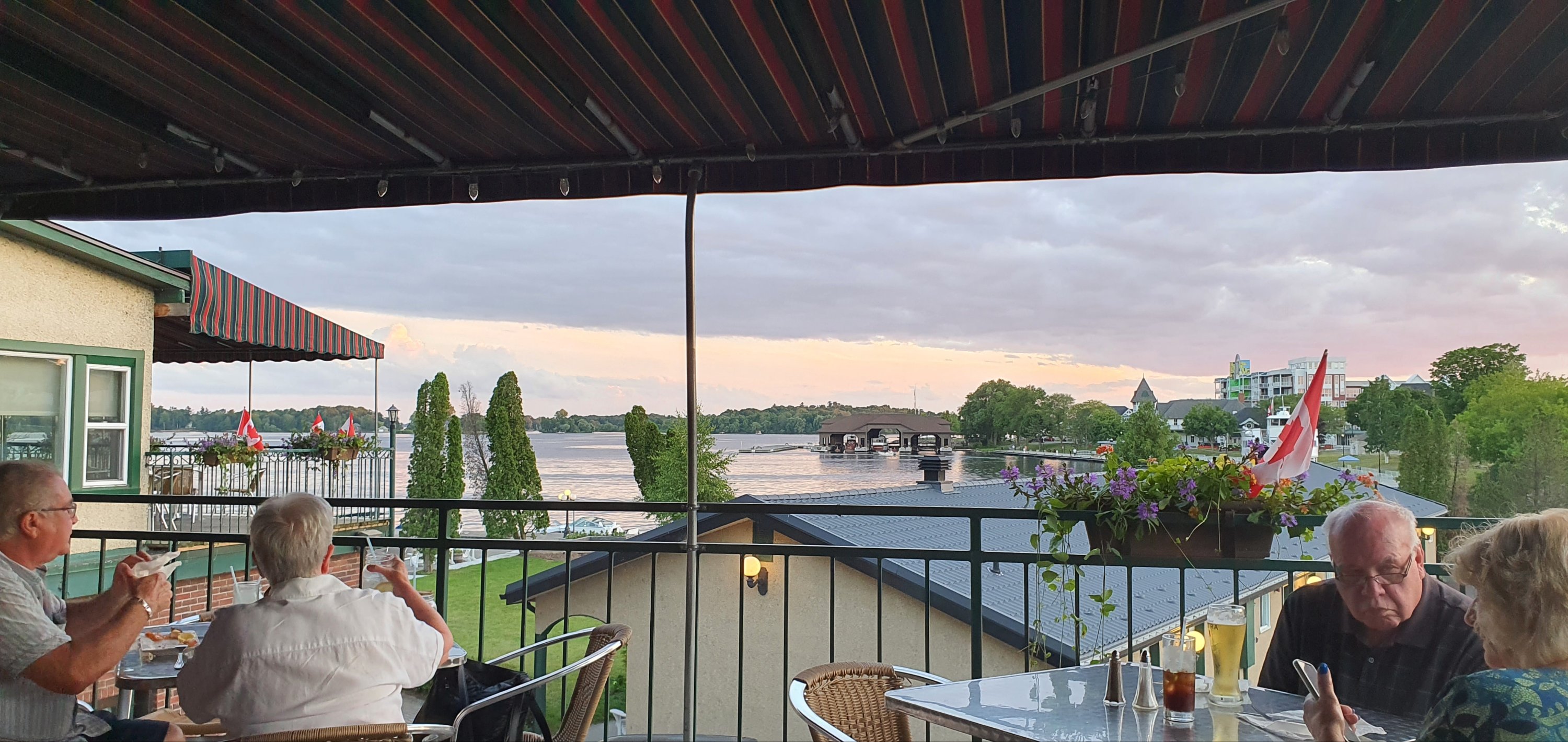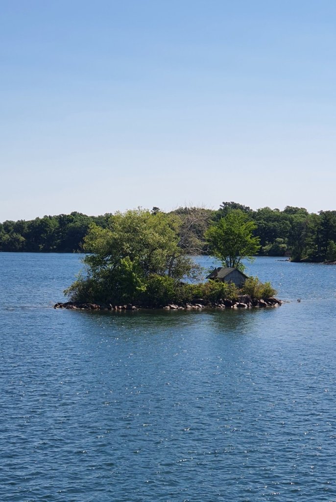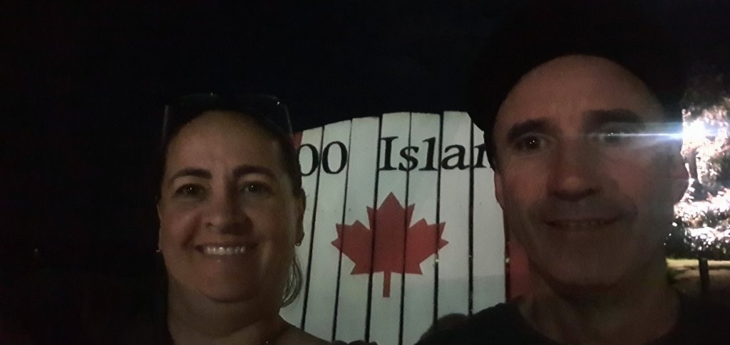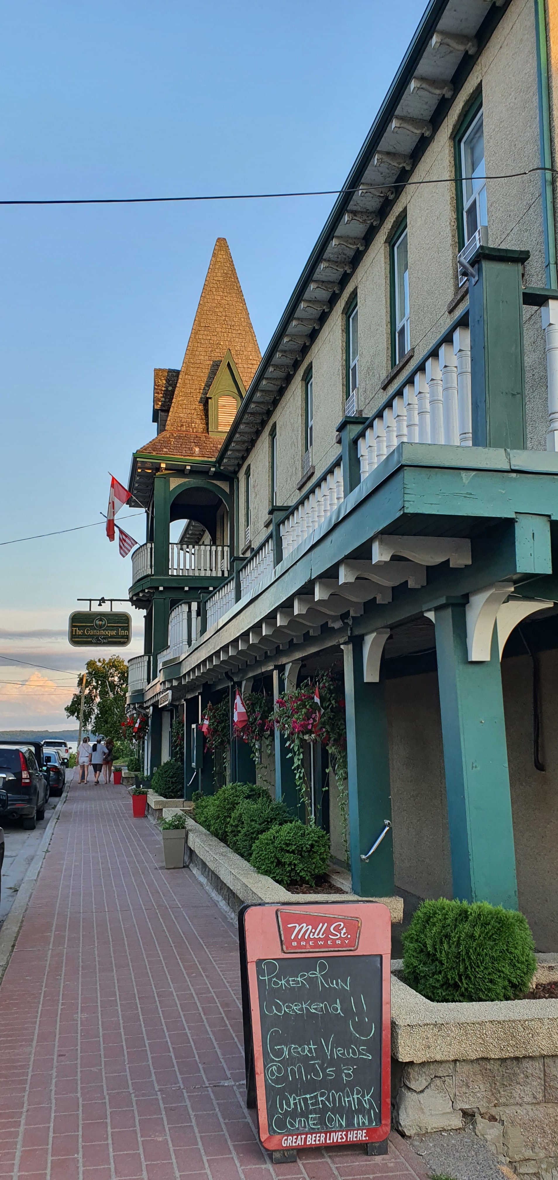 1,000 seems alot right? It is actually a group of 1,864 Islands in the St Lawrence River that flows out of Lake Ontario. The are split between being owned by USA and Canada. They agreed to split evenly by area, Canada has more and USA has the biggest (of course 🙄). We booked our accommodation at Gananoque (pronounced Gananock) in a 126 year old Inn. We arrived late, of course, but the sun was still up enough for us to take in the river views.
