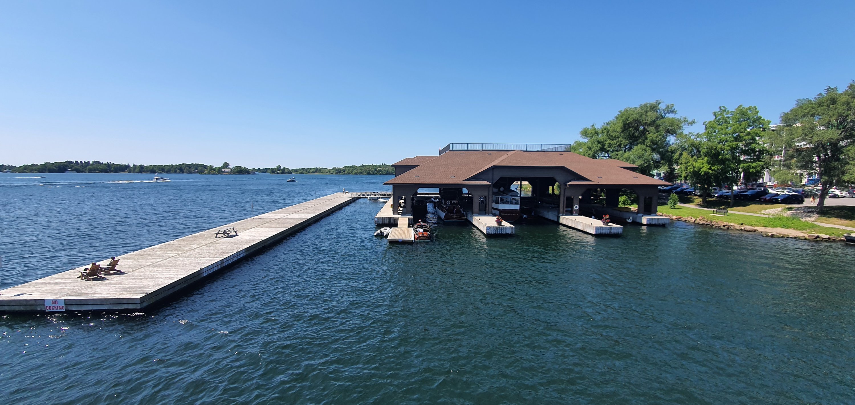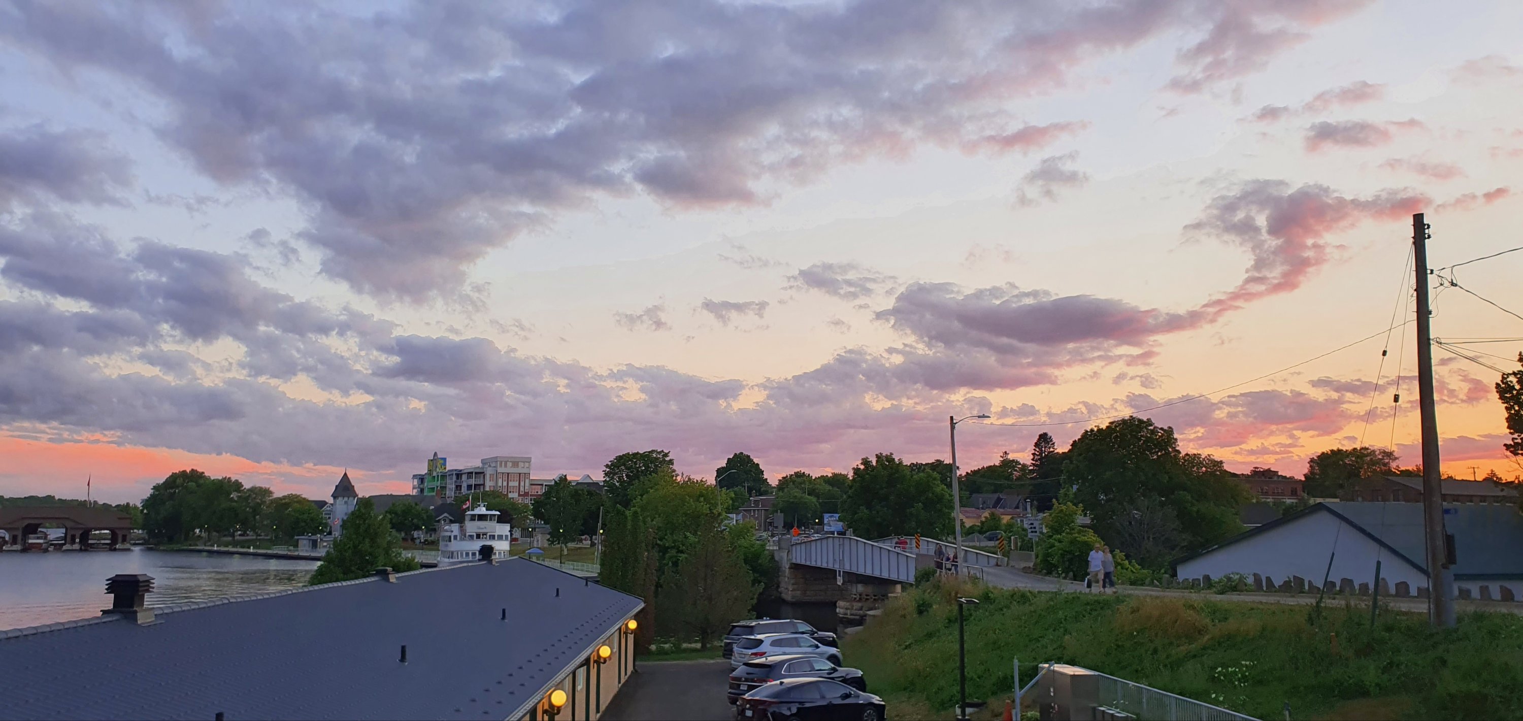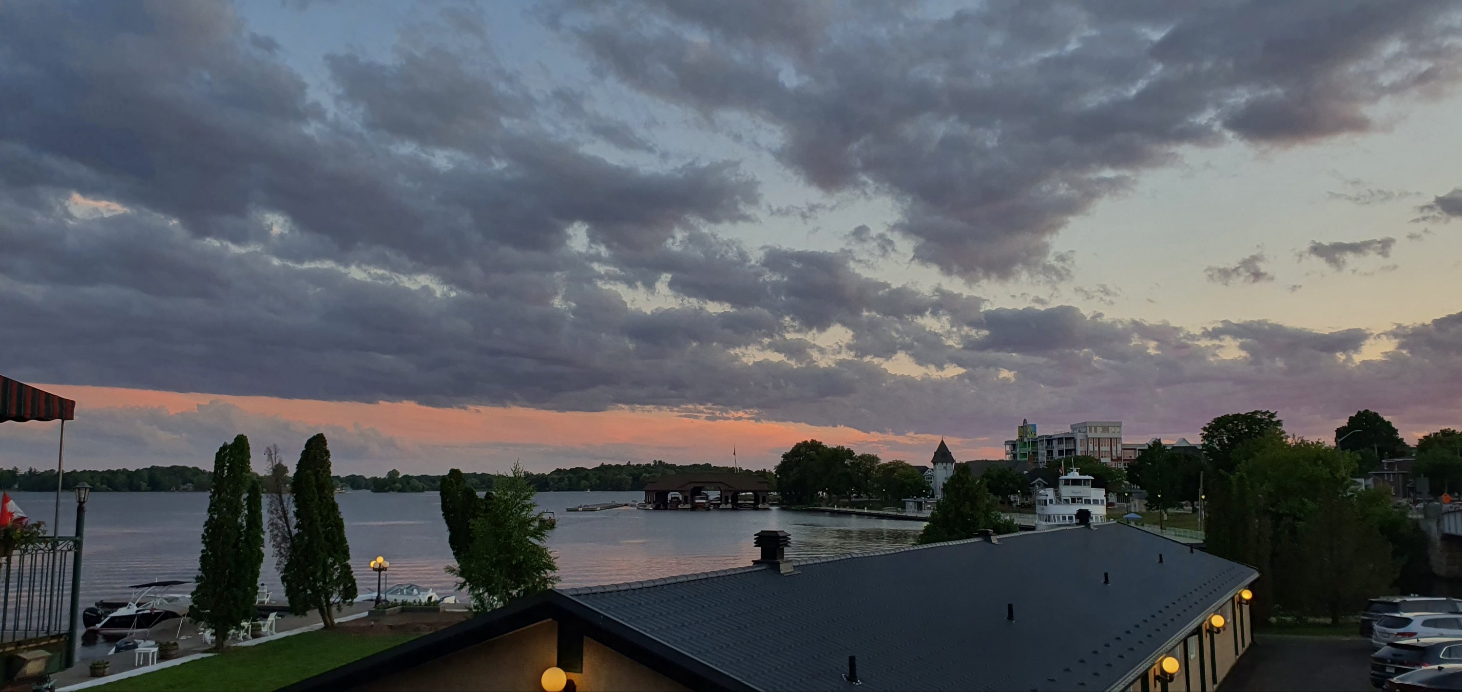 1,000 seems alot right? It is actually a group of 1,864 Islands in the St Lawrence River that flows out of Lake Ontario. The are split between being owned by USA and Canada. They agreed to split evenly by area, Canada has more and USA has the biggest (of course 🙄). We booked our accommodation at Gananoque (pronounced Gananock) in a 126 year old Inn. We arrived late, of course, but the sun was still up enough for us to take in the river views.