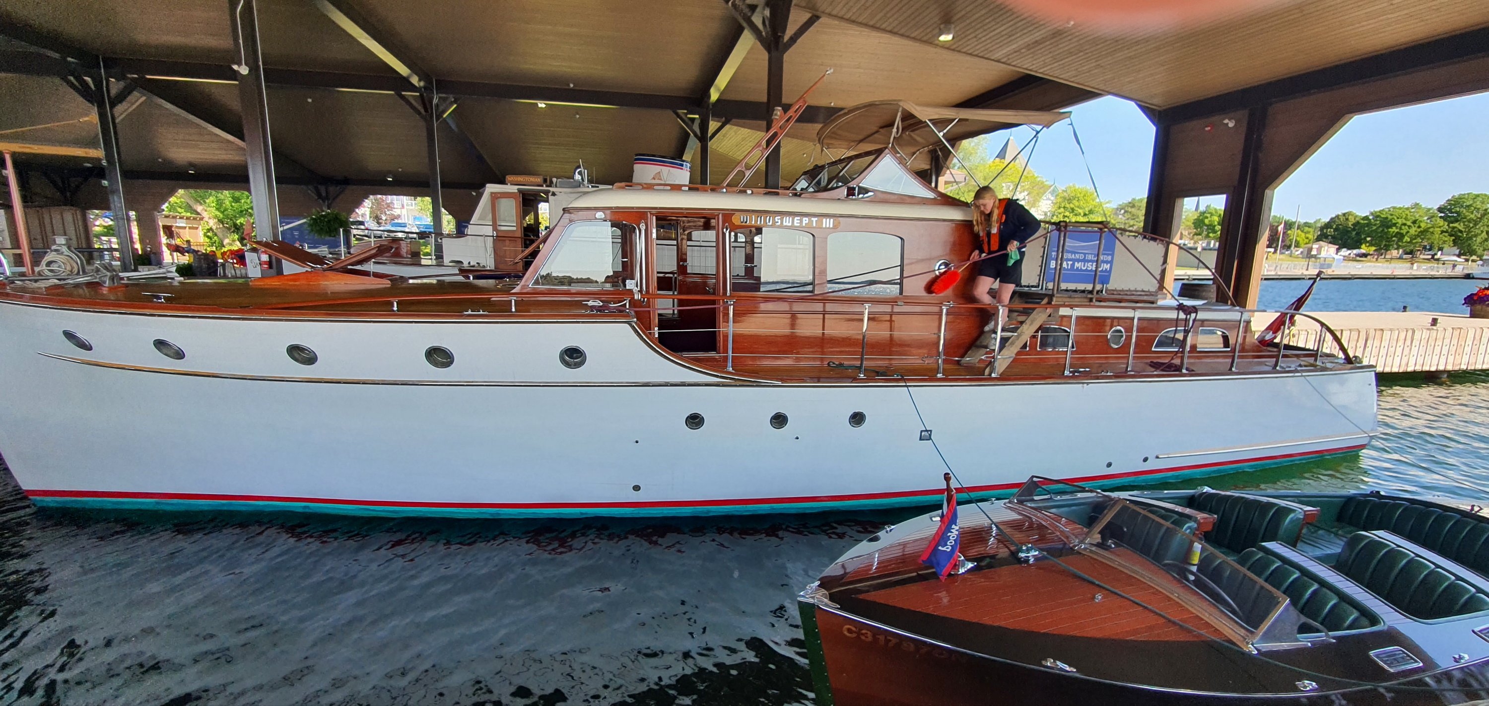 In the morning we had an early (by locals measure) 10.30am tour of the islands booked. A lot of our accommodation has included breakfast and this one was probably the best. Full tummies, we headed off to explore the dock in the daylight and checked out the museum. It was a floating museum and the entry was by donation. Again, this was Wayne’s happy place learning interesting facts about things like here he found a front mounted speed boat that had the engine in front to allow more room for passengers.