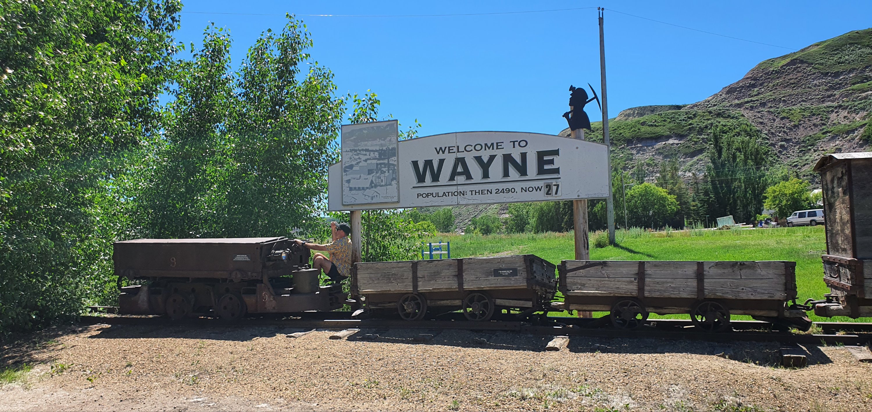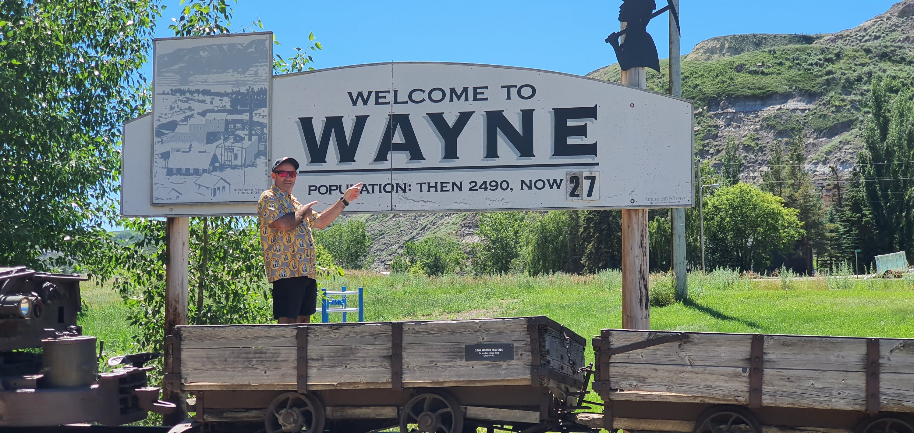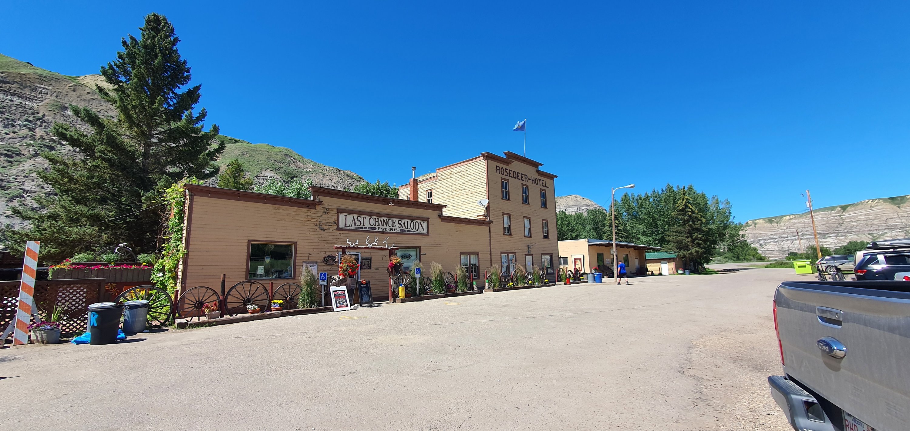 On the way to the HooDoos we passed a sign to the town of Wayne… remember what I said about the highlight of the trip thus far? Of course on our way home, we had to make the trip to Wayne’s town.Β  The journey to his town is via 9 of the ’11 bridges’. We pulled into the Last Chance Saloon for a hard earned beer but unfortunately they had such a busy weekend, they ran out of water, not beer, but were still closed πŸ˜” Wayne still got his Wayne town souvenir hat and we headed across the remaining bridges so see the little valley town of 27 residents. This town, even more than Drumheller, was straight out of a western. Wayne has now been to Wayne and nothing was going to out shine this day for him!