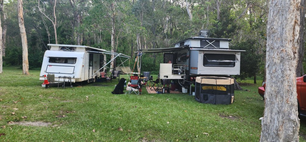 These sites where to the back of the park among paperback trees with a back drop of forest. It was shady, had a good breeze and suited travelling with grandparents, nieces, our youngest daughter and two dogs. We like our own space and had plenty of it here.
